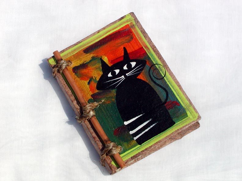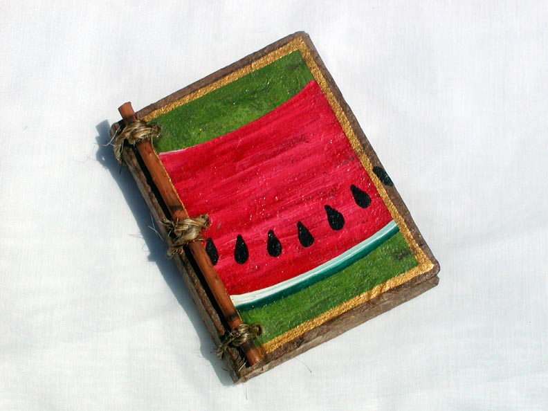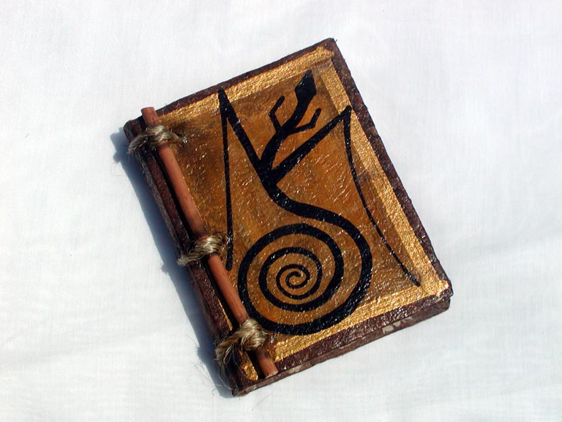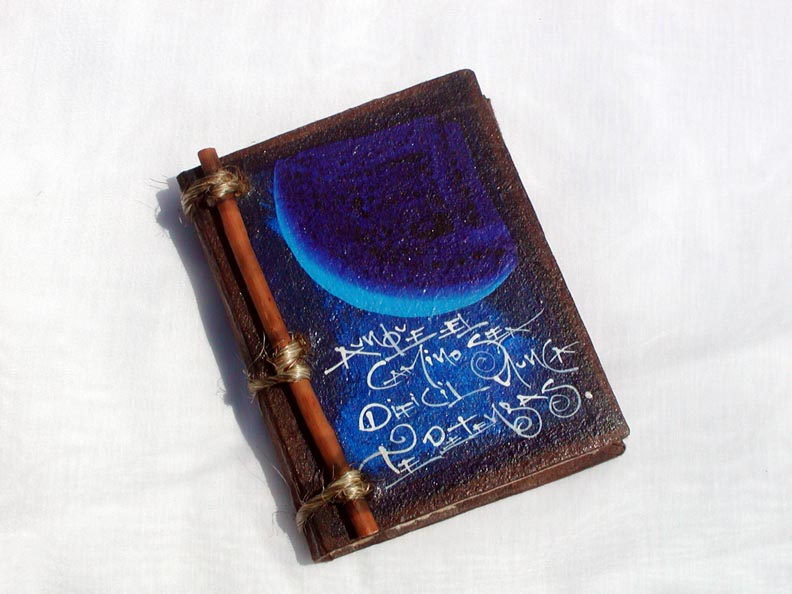 Each diary design is usually available in two sizes: Small (6" X 4") and Large (9" X 6"). The small diaries are priced modestly at $20.00 and the large at $39.00 with tax included.. Cuauhtli's pricing does not include shipping. Unless otherwise agreed upon before placing your order, diaries are shipped U.S.P.S. Priority Flat Rate Envelopes and Boxes. (1 "Flat Rate Envelope" $8.00 holds up to 2 small or 1 large diary(ies). (1 "Flat Rate Box" $14.00 holds up to 8 small or 4 large diaries). For shipping prices outside the United States and for wholesale pricing, please email us at, kikosplace@hotmail.com (Click on images for better detail and to enlarge in new window)